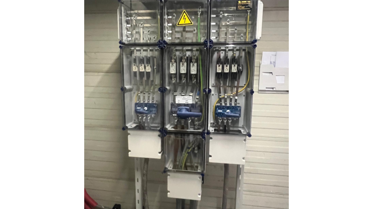 - Het plaatsen van een Eaton Halyester verdeler met 250A hoofdvoeding (2x125A), gemonteerd op een degelijk stalen rek